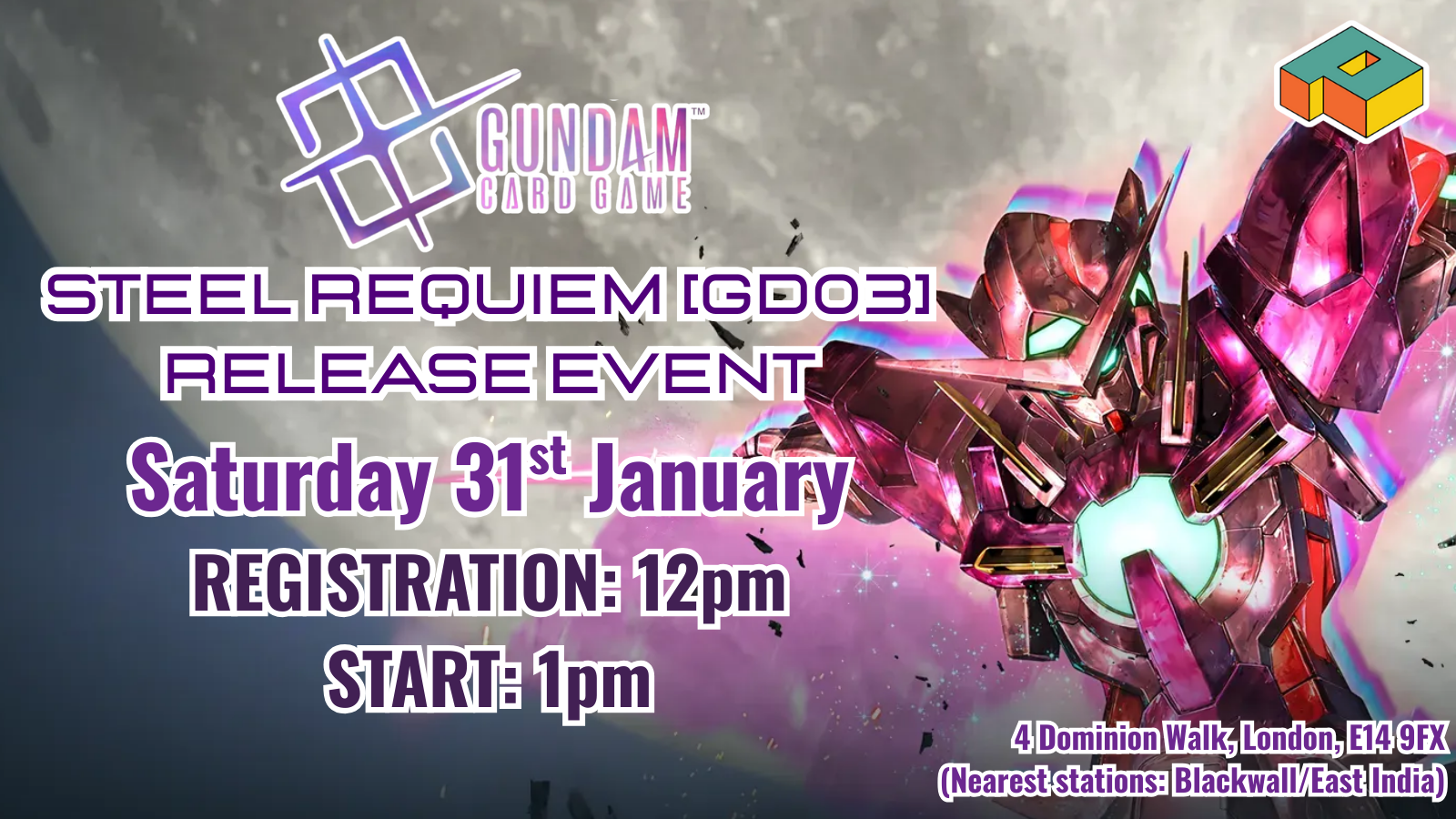 Celebrate the release of Steel Requiem at P9 Card Game. Sealed deck rules: Each player receives 8 booster packs of GD03, to build a 30 card deck. Registration from 12, […]