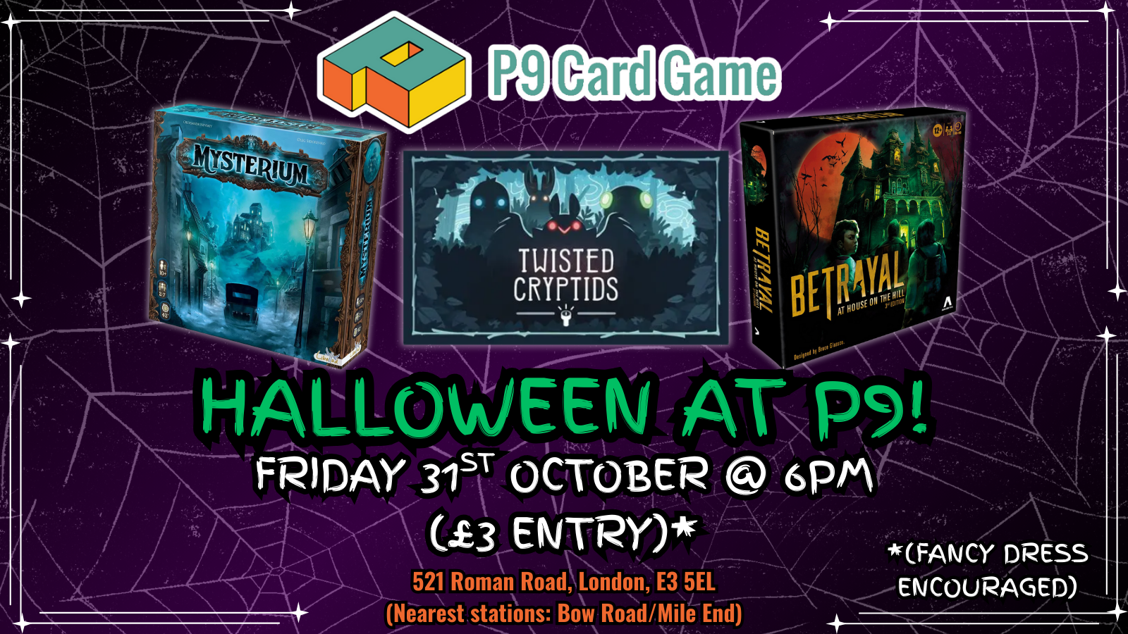Spooky board games hosted in our Roman Road store this Halloween! The staff of P9 have chosen their favourite spooky games and we want to share them with you, our loyal players! Enjoy classics like Betrayal at House on the Hill, Mysterium, and Twisted Cryptids on a truly spooky time. Arrive from 6 and enjoy […]