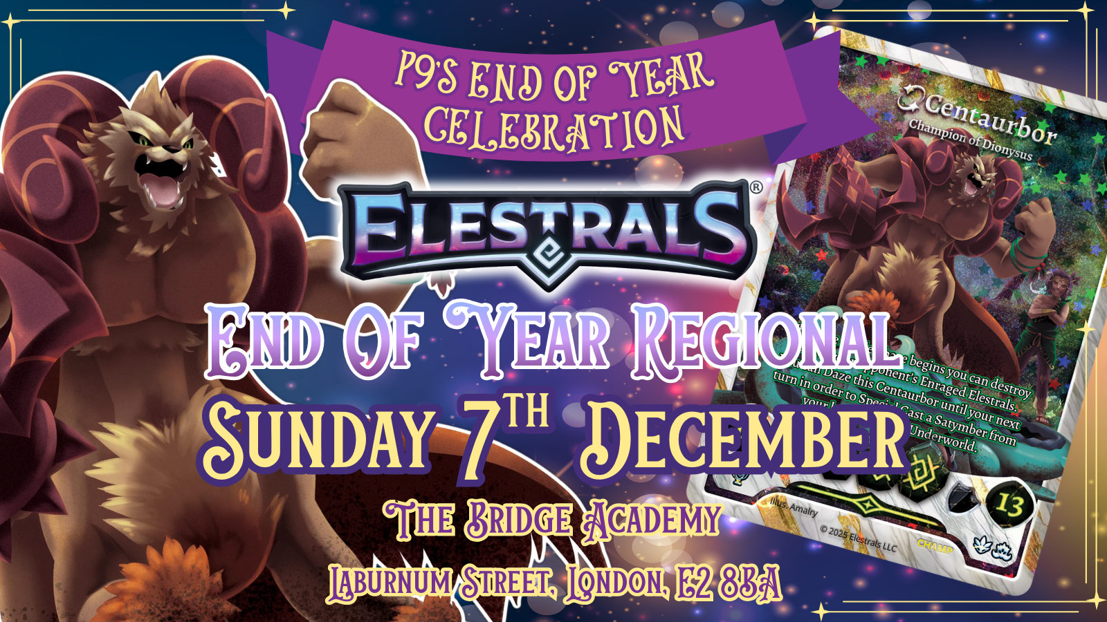 The Gods have chosen their Divine Champions! This is the first major Elestrals Tournament outside the United States with a serialised Centaurbor on the line. Timings: Registration from 11, play starts at 12. Registration done through the official Elestrals Play Network site. Prizes: Serialised 1/8 Centaurbor promo card for the highest place player, multiple older […]